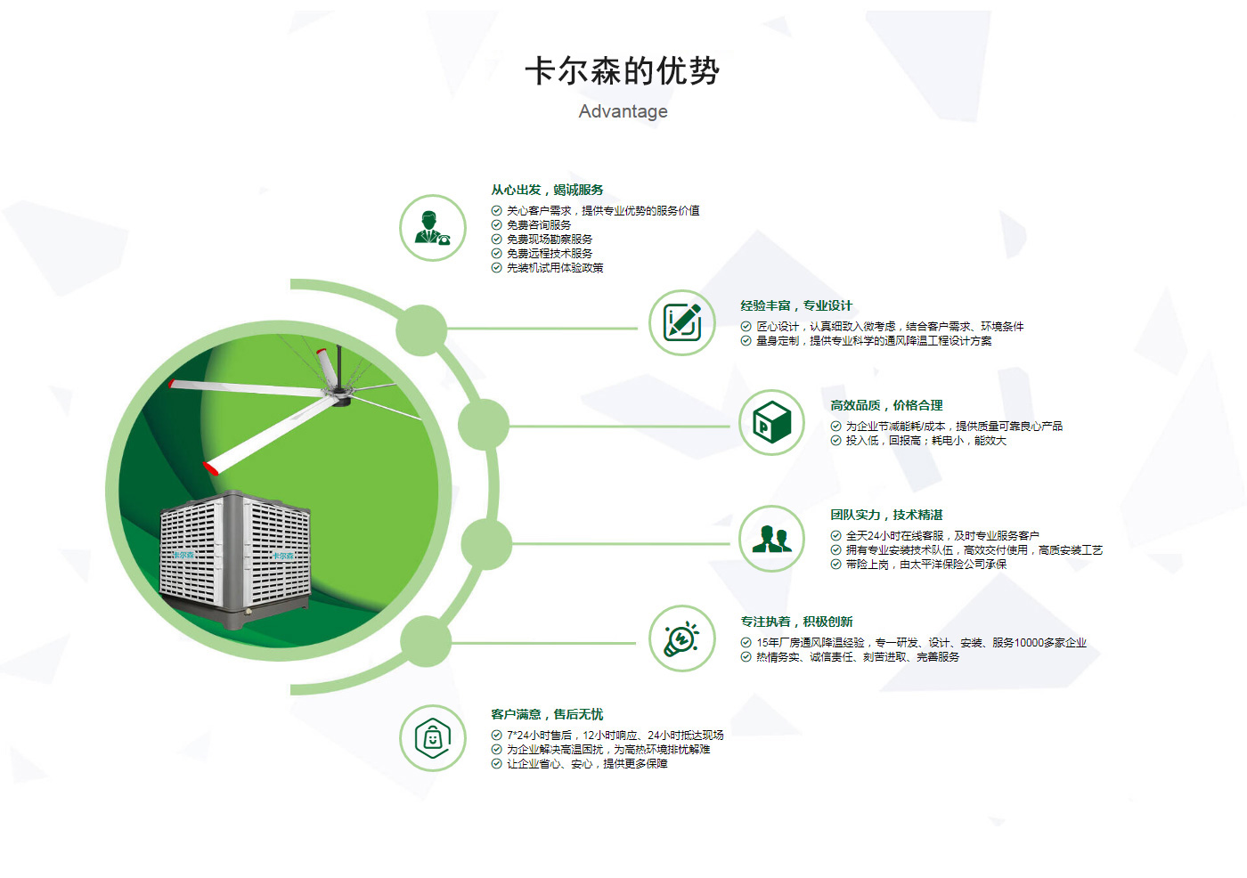 ??晉江市卡爾森機(jī)電設(shè)備有限公司是一家集設(shè)計(jì)、制作、銷售、安裝工業(yè)通風(fēng)設(shè)備、中央空調(diào)、節(jié)能環(huán)保空調(diào)、脈沖除塵設(shè)備、環(huán)境凈化工程、等環(huán)保工程企業(yè)。并提供環(huán)境影響評(píng)價(jià)、環(huán)保工程總承包、環(huán)保工程設(shè)計(jì)、環(huán)保工程運(yùn)營、環(huán)保工程成套設(shè)備等一站式服務(wù)。公司一直誠心服務(wù)于工業(yè)廠房的通風(fēng)設(shè)施,我們的產(chǎn)品:“品種齊全、質(zhì)量優(yōu)越”。根據(jù)客戶的需求精心設(shè)計(jì),高質(zhì)量的制造,力求使每個(gè)產(chǎn)品都達(dá)到合理耐用、節(jié)能環(huán)保。科學(xué)的設(shè)計(jì)和精美高品質(zhì)的產(chǎn)品,完善的服務(wù)系統(tǒng),加強(qiáng)售前、售中、售后服務(wù),對(duì)顧客在使用商品中出現(xiàn)的各種問題及時(shí)解決,使顧客無后顧之憂。產(chǎn)品廣泛適用于各類型制造業(yè)、機(jī)械類、五金冶煉、食品、化工、電子、紡織、噴涂、娛樂以及服務(wù)等場所。我們秉承“質(zhì)理過關(guān)、價(jià)格合理、交期準(zhǔn)時(shí)、服務(wù)周到”而受到新老客戶的好評(píng)和信賴。我們堅(jiān)持“客戶至上、質(zhì)量上乘”為宗旨,努力工作,為您換來潔凈美好的明天。卡爾森愿以過硬的質(zhì)量,良好的信譽(yù)同各界朋友一起開創(chuàng)更加輝煌的未來。